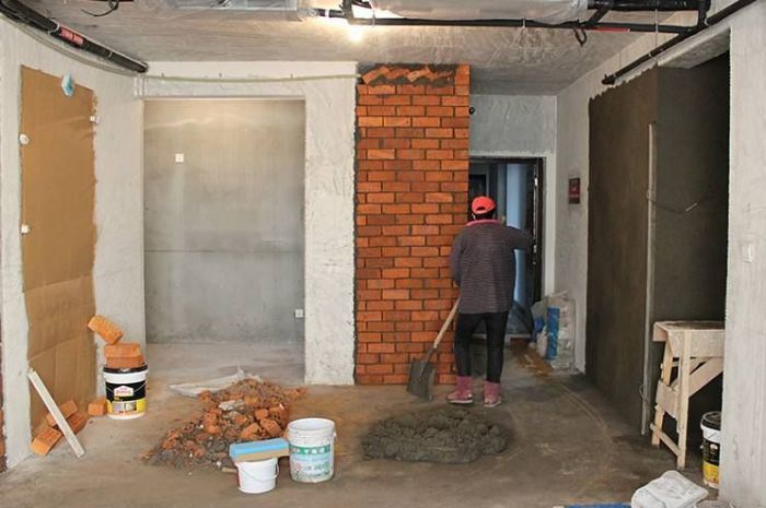 3、主题拆改,要根据设计方案,首先进行主题拆改,包括拆墙,铲墙皮,拆暖气设备,换窗户等,比如一室改二室,二室改三室,这都是为了将来打算,尽量考虑长远一些,如果等到需要的时候拆改,那就费时费力费钱了,还有拆改时一定要和物业协商好,避免动到承重墙。
