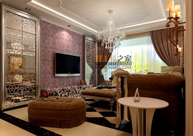 欧式风格 客厅 二居 面积:60㎡|半包费用:2.4万元 |