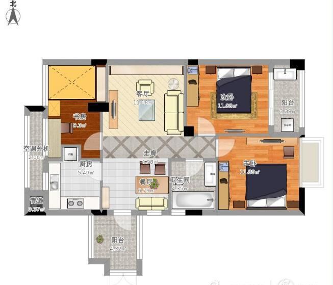 天河一号89平米装修效果图