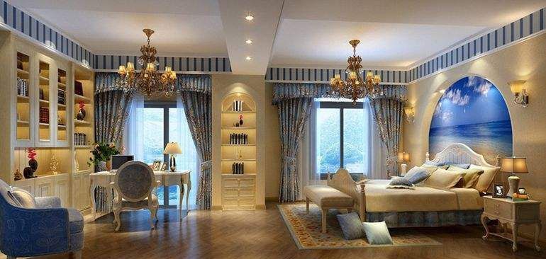 地中海风格也属于欧式的一种。这种风格给人感觉接近自然的放松之感,蓝天、白云、大海,清新、别致。所以,地中海风格的主色调是蓝白相间的。这种风格对清洁的要求很高,目前,全屋装地中海风格的比例还不是很高,多见于儿童房,特别是男孩。 |
