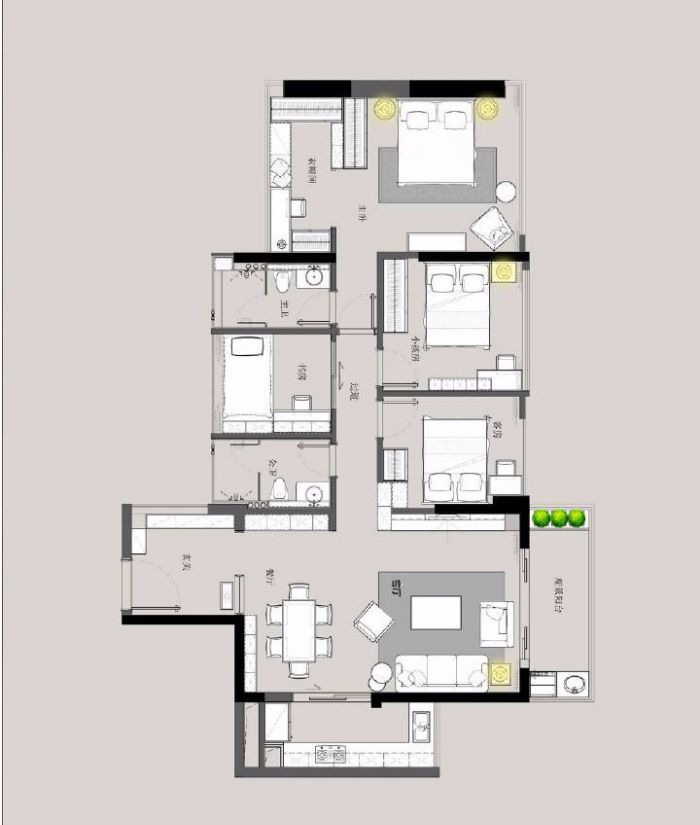 江南万达华府120平米装修效果图